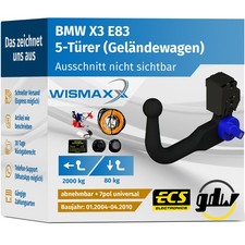 Für BMW X3 Typ E83 Anhängerkupplung abnehmbar +eSatz 13pol uni 01.2004-12.2010