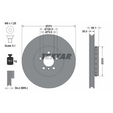 1x TEXTAR Bremsscheibe Vorderachse links Ø374mm für BMW 92266025