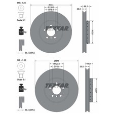 TEXTAR Bremsscheiben Ø 374mm für BMW 5er GT F07 550i F01-04 750i 760i 750d vorne