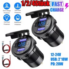 12V QC 3.0 PD USB Auto KFZ Steckdose Dual USB Ladegerät Buchse Dose KFZ Einbau