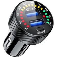 USB Ladegerät Zigarettenanzünder QC3.0 Dual Schnellladung Voltmeter LED