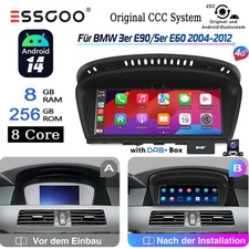 DAB+ 8+256GB CarPlay für BMW E60 E61 E90 E91 CCC GPS Android14 Autoradio 4G KAM+