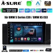 DAB+ Android 14 Carplay IPS Autoradio Kam AM/FM RDS GPS für BMW 5er E39 X5 E53