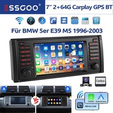 Carplay Android 14 Autoradio GPS NAVI 2+64GB DAB+ Für BMW 5er E39 X5 E53 7er E38