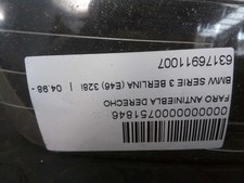 63176911007 751846 nebelscheinwerfer rechts BMW SERIE 3 BERLINA E46 328I 1998