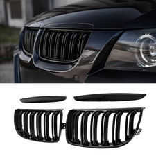 Für BMW 3er E90 E91 2004-2008 Nieren Grill GLANZ SCHWARZ Kühlergrill Doppelsteg