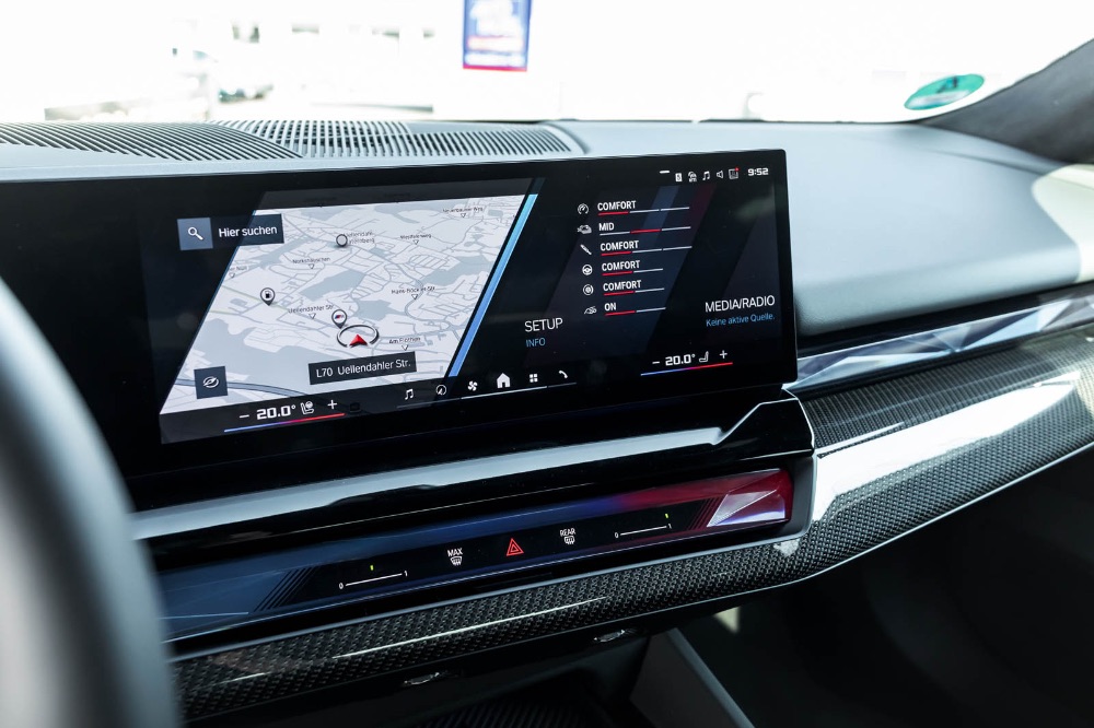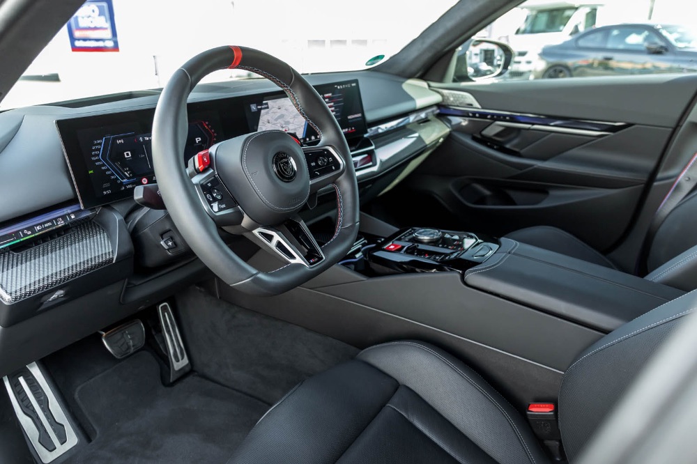Im Innenraum verfolgt MANHART einen deutlich ruhigeren Ansatz als bei Antrieb und Fahrwerk. Statt das Cockpit komplett umzubauen, setzt der Veredler auf ausgewählte Akzente, die das Fahrzeug subtil individualisieren. Genannt werden bestickte Fußmatten sowie ein Alcantara-Dachhimmel. Das klingt zunächst unspektakulär, passt aber gut zur Gesamtidee des MH5 900E Touring. Denn gerade bei einem Fahrzeug, das ohnehin bereits werksseitig ein hohes Premium-Niveau mitbringt, ist weniger oft mehr.